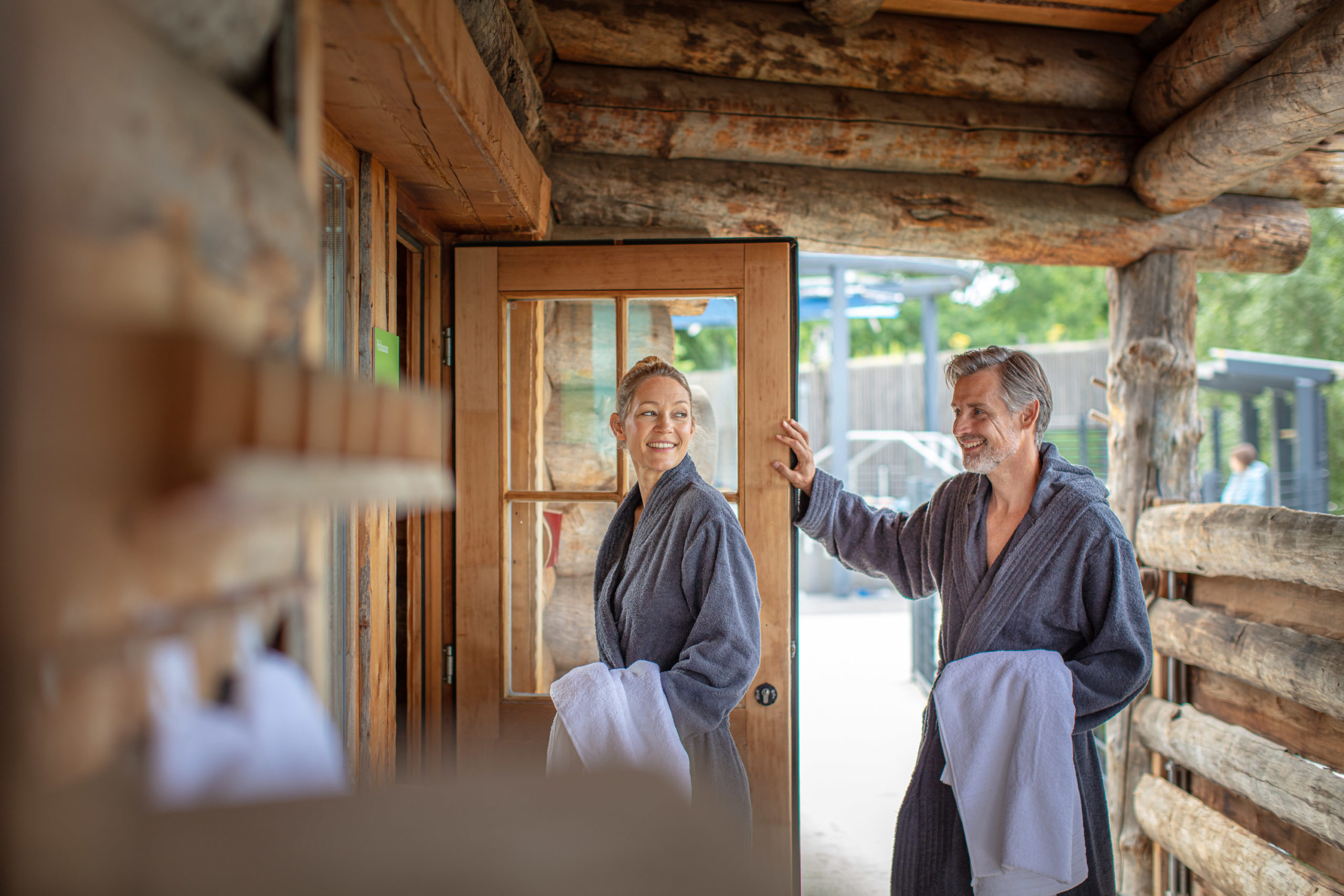 Entdecke die neu eröffnete Aggua Sauna & Lounge – eingebettet in den schönen Aggerauen – und verbringe einen entspannten Tag in unserer modernen Saunalandschaft. Ob im weitläufig angelegten Saunagarten mit vielen Liegeflächen oder im mit exklusiven naturnahen Materialien und Farben gestalteten Innenbereich. Rundum wohlfühlen ist garantiert. Atme tief durch und gönn Dir einen entspannten Tag in der Natur. Unsere neue Saunalandschaft bietet Vielfalt in allen Bereichen: Saunieren mit Weitblick in die Aggerauen oder schwitzen auf höchstem Niveau, entschleunigen auf den einladenden Wasserbetten in den Ruheräumen, anregenden Austausch im Loungebereich oder sich mit leckeren Köstlichkeiten aus dem Restaurant verwöhnen lassen. Entdecke das Ambiente unserer naturnah gestalteten Lounge und teste das reichhaltige Angebot!