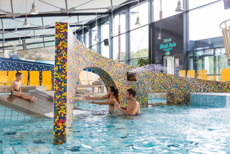 Die 80 Meter lange Black-Hole-Rutsche sorgt für rasanten Rutschenspaß. Abwechselnd sorgen absolute Dunkelheit und spezielle Lichteffekte für Action und Dynamik.