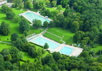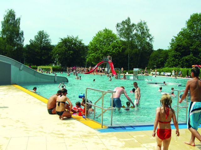 Besonders interessant ist das „Badezentrum“ im Sommer. Dann ist nämlich außerdem das weitläufige Freibad offen. Auch hier gibt es ein 50-Meter-Sportbecken sowie einen Sprungturm. Allerdings kann man hier sogar seinen Mut beim Sprung von der 10-Meter-Plattform be¬weisen. Im riesigen Nichtschwimmerbecken fühlen sich vor allem die Senioren wohl. Auch ein erst kürzlich neu gestaltetes Spa߬becken gibt es, in das eine Familien-Breitrutsche einmündet. Noch viel mehr Spaß macht allerdings die Fahrt auf der über 100 Meter langen Großrutsche. Zum natür¬lichen Bräunen stehen sechs Hektar Liegewiese bereit. Sehr beliebt ist aber der Aufenthalt in den beiden Strand-Restaurants. Hier kann man sein Weizenbier sogar im Strandkorb in einer weißen Sanddüne genießen.