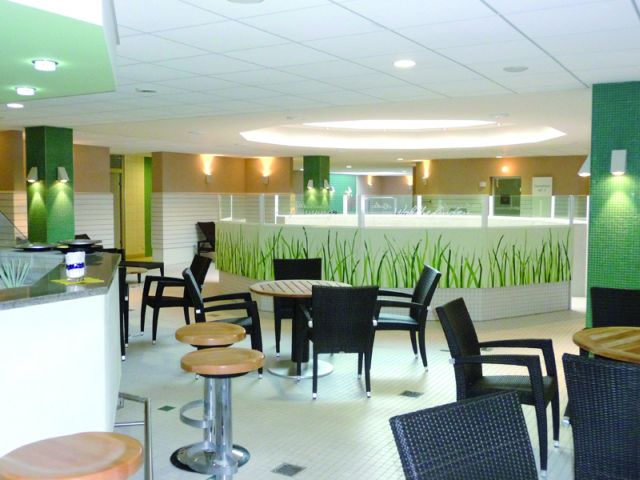 Vor allem die Sportler fühlen sich im „Badezentrum“ wohl. Das Indoor-Sportbecken ist mit 50 Metern Länge und acht Bahnen eines der größten in Deutschland. Durch eine schmale Wand davon abgetrennt befindet sich das Sprungbecken. Hier können Groß und Klein gleichermaßen Mut und Geschick unter Beweis stellen. Immerhin fünf Meter hoch ist die oberste Plattform. Das Lehrbecken erlaubt auch Nichtschwimmern den Kontakt mit dem nassen Element. Und schließlich gibt es auch noch ein Kinderbecken für die Kleinsten.
