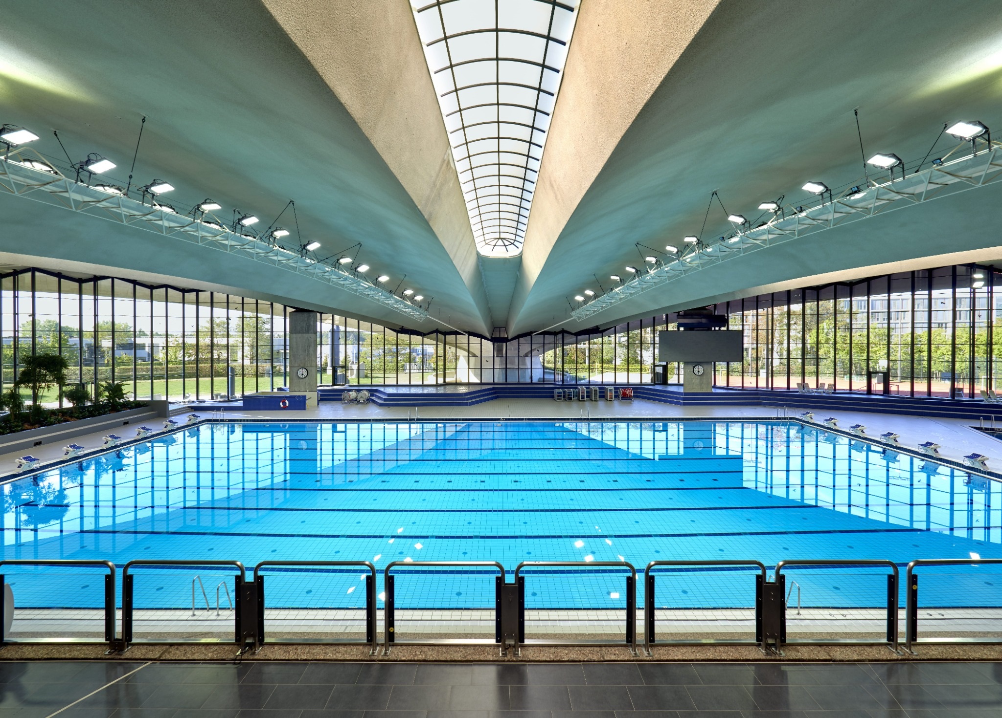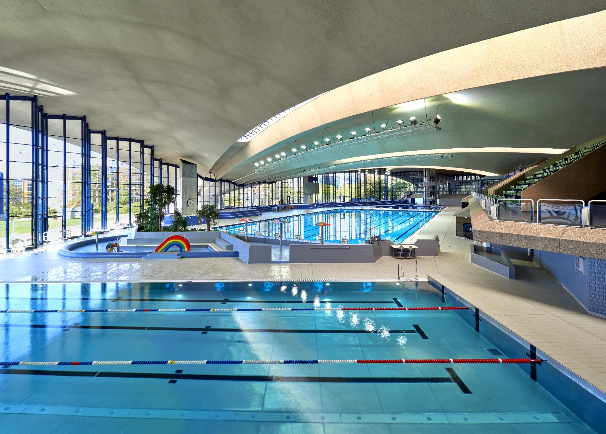 Die Coque verfügt über ein umfassendes Schwimm- und Kursangebot im Centre Aquatique. Dazu gehören ein 50-Meter-Olympiabecken mit acht Bahnen, ein 25-Meter-Becken, ein Sprungturm mit Plattformen von 1 m bis 10 m sowie ein Sport- und Gesundheitsbecken für Schwimm- und Aquafitnesskurse. Ergänzend stehen ein Tauchbecken sowie ein angeschlossener Fitnessbereich zur Verfügung. Das Sportschwimmbad wird in erster Linie von Schulen, Verbänden und Freizeitschwimmern genutzt.