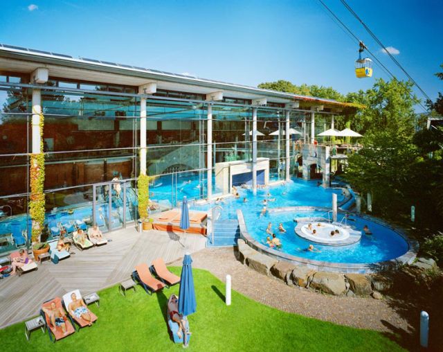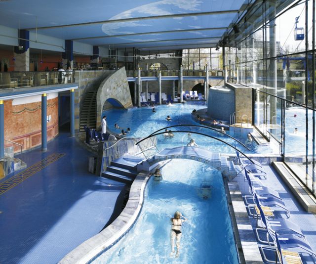 Im Badebereich der CLAUDIUS THERME finden Sie vielfältige Möglichkeiten um einfach abzuschalten, auszuruhen, Stress abzubauen und neue Kräfte zu sammeln. Die Innen- und Außenbecken der Anlage sind mit einer großen Anzahl an Wasserattraktionen ausgestattet: Massagedüsen, Sprudelliegen, Luftsprudler, Luftexplosionen, Wasserfälle, Nackenduschen, Strömungsbecken, Heilwasser-Badebecken – innen/außen, Innen- und Außen-Whirlpools (ca. 36 Grad), Unterwassermusik, Solarien, Trinkbrunnen, Heilwasser-Sitzbecken, Heiß-Kalt-Grotte (ca. 36/20 Grad), Ruheräume, Sonnenterasse, Liegewiese, anspruchsvolle Gastronomie.