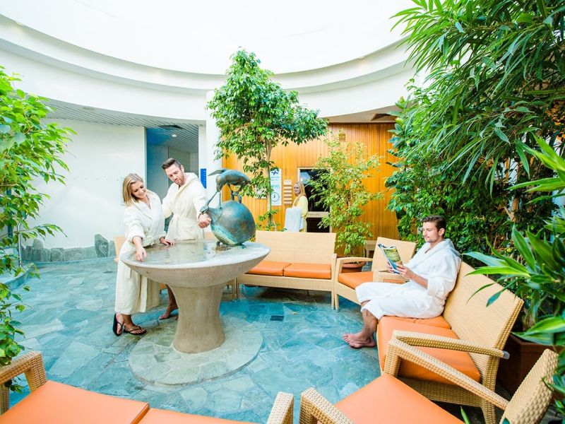 Im Saunabereich findet man Finnische Saunen, Bio-Saunarium, Dampfbad, Blockhaussauna, Whirlpool, Kneipp-Becken, Massageliegen, Ruheraum und Getränkebar.