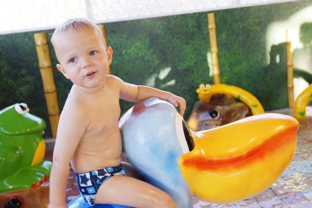 Im Erlebnisbecken sorgen ein Strömungskanal, Massagedüsen, Bodensprudler, Kletternetz, Grotte und ein Wasserfall für Abwechslung im feuchten Element.