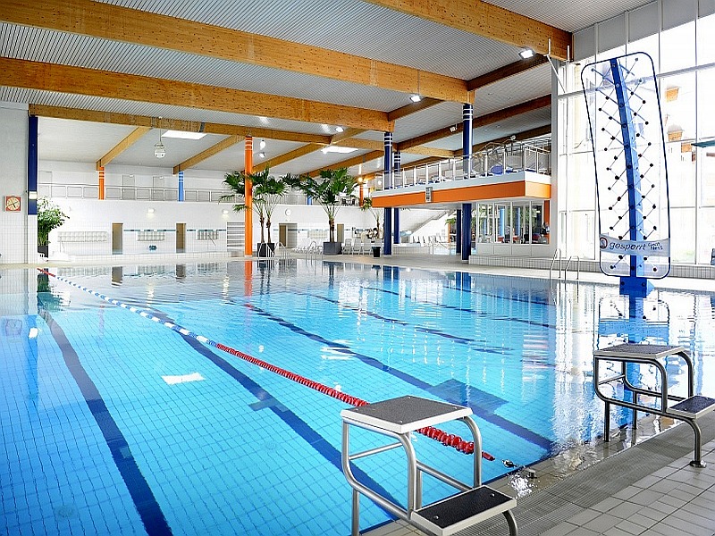 In der Wasserlandschaft erwartet Sie ein Erlebnisbecken, ein Strömungskanal, ein Beckensprudler und Whirlliegen, sowie eine 65 Meter lange Röhrenrutsche mit Zeitmessung. Hoch hinaus kommt man an der Kletterwand. Für sportlich ambitionierte Sportschwimmer steht das 25 Meter Wettkampfbecken zur Verfügung, wo diese ihre Bahnen ziehen können; unsere kleinsten Gäste planschen selbstverständlich im Babypool.