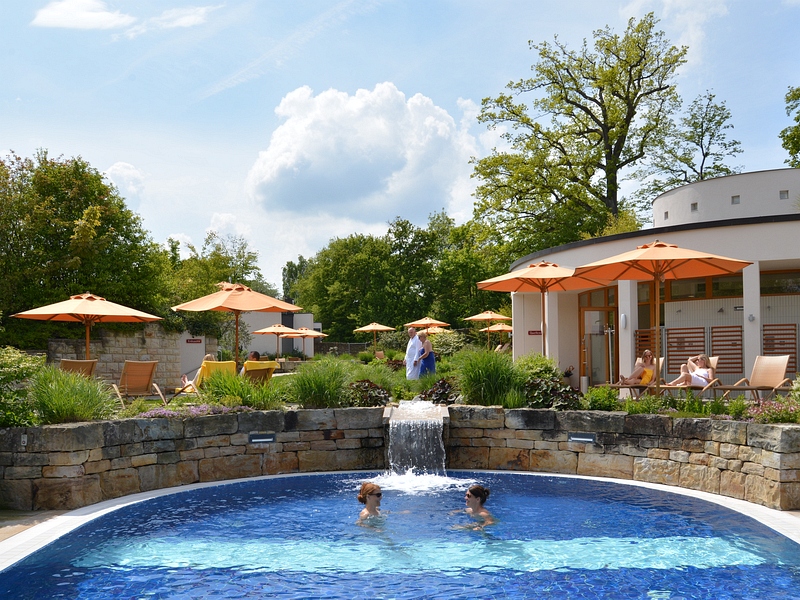 Ob innen oder außen, Sprudelliegen, Massagedüsen, Nackenduschen, Wassertemperaturen von 31 bis 36 Grad: In den sechs Entspannungsbecken bleiben keine Badewünsche offen. Mehrmals täglich werden dazu Wassergymnastik und andere kostenlose Gesundheits- und Fitnesskurse angeboten.