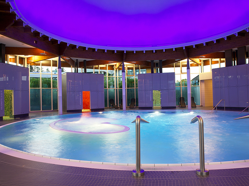 Optional dazubuchen lässt sich der Vitalbereich. Hier befinden sich ein großes Wohlfühlbecken, Sprudelliegen, Massagedüsen, Wasser-Vulkan, Strömungskanal sowie Wärmebänke. Rund um das Becken befinden sich vier Erlebnis-Grotten mit wohltuenden Effekten: Sole, Duft & Dampf, Feuer und Eis.