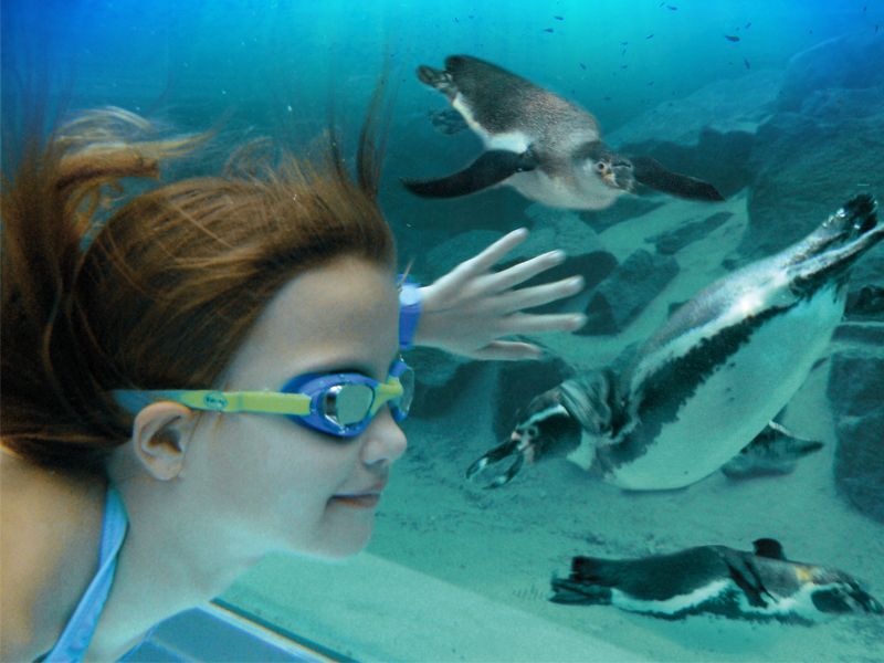 Sie brauchen erst Action? Sie können nun mit unseren Pinguinen um die Wette schwimmen. Paul, Tilly und ihre Freunde erwarten Sie schon im Außenbecken. Nur durch eine Glasscheibe getrennt, können Sie mit den possierlichen und neugierigen Tieren um die Wette schwimmen. Geheimtipp: Nehmen Sie sich unbedingt eine Taucherbrille mit, so können Sie die lustigen Gesellen noch besser unter Wasser beobachten!