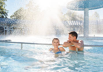 Tauchen Sie ein in die vielfältige Thermenlandschaft und genießen Sie die wohltuende Wirkung des Thermalwassers in 12 Thermalbecken mit Wassertemperaturen von 29° bis 42°C. Die Beckenvielfalt reicht vom Rundbecken mit dem berühmten „Schwammerl“-Springbrunnen über das Grottenbad bis hin zum Trapezbecken mit der kostenlosen Wassergymnastik.