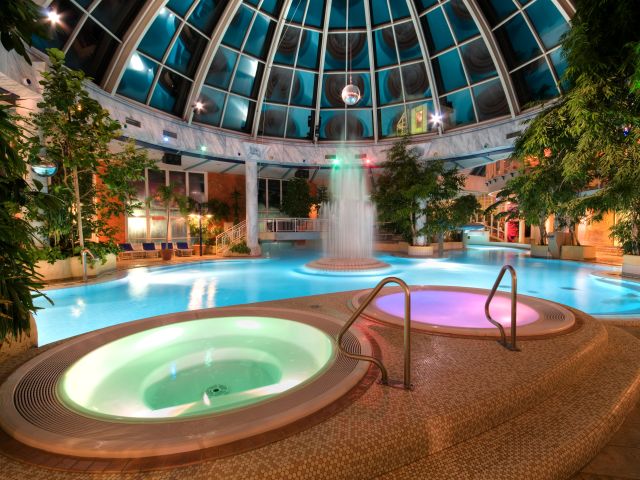 Ein Highlight unter den Freizeitbädern: In der subtropischen Bade-Freizeitwelt mit neuen Wasserrutschen von 130 und 75 Metern, Strömungskreisel, Wasserfall, Whirlpools, Massageliegen und Nackenduschen fühlen sich Kinder und Erwachsene gleichermaßen wohl. Über 30 Grad warmes Heilwasser, drinnen und draußen, heißt Badespaß ohne Gänsehaut.