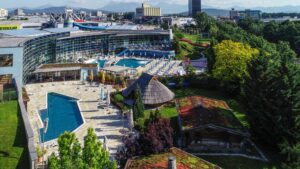 - Außenbereich | Behindertengerecht | Fitnessstudio | Innenbereich | Restaurant | Rutsche | Sauna | Snackbar | Solarium | Sport- und Animationsprogramm | Thermalwasser | Wellnessbereich