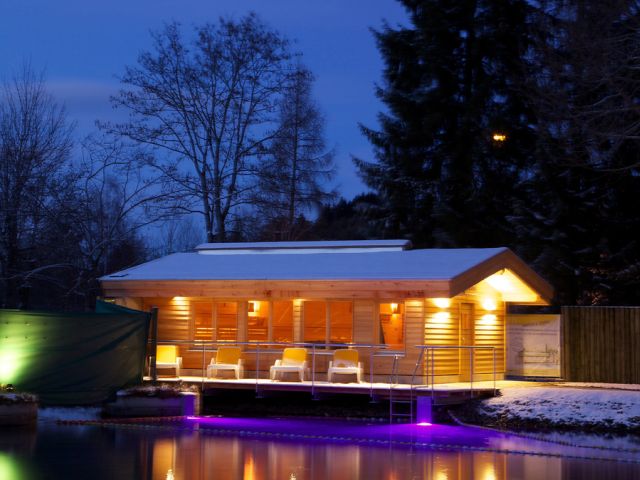 Unique! Hot steam in Finnish or Roman style. Natural lake, log cabin sauna and an original Bavarian “Stadelsauna” in the sauna garden.