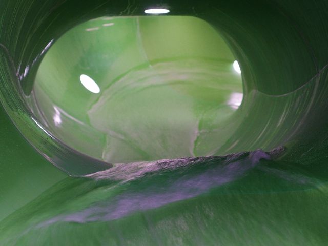 An X-Tube slide (120 metres long), a black-hole slide and a freefall slide. A diving platform up to three meters is also available in a separate diving pool.