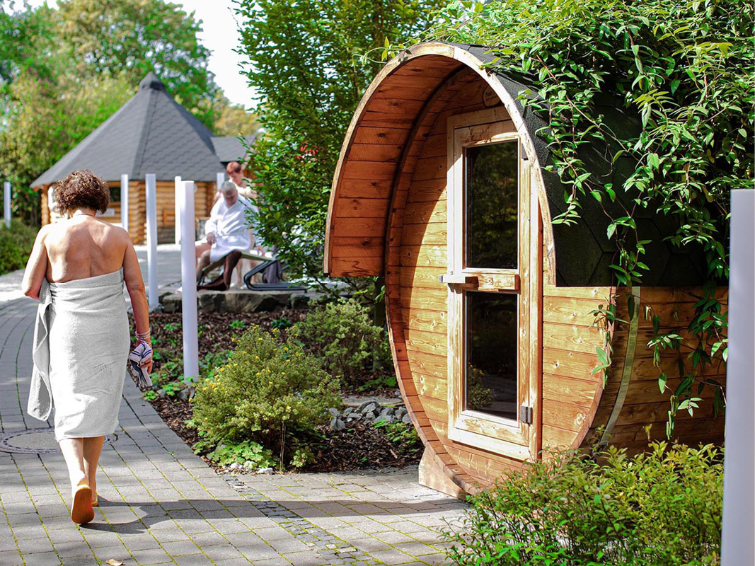 Direkt angrenzend erwartet dich unsere Saunawelt – ganzjährig geöffnet und liebevoll gestaltet. Genieße Saunagänge in der Panoramasauna, Biosauna, Landhaus- oder Kelo-Sauna, entspanne in Fass- und Kotasauna oder im fein abgestimmten Dampfbad. Der Naturgarten mit Kota-Ruhehaus, Erlebnisduschen und geschützten Rückzugsräumen lädt zum Verweilen ein. Ob Aufguss, Auszeit oder Genusspause – hier findest du deinen Moment zum Durchatmen.