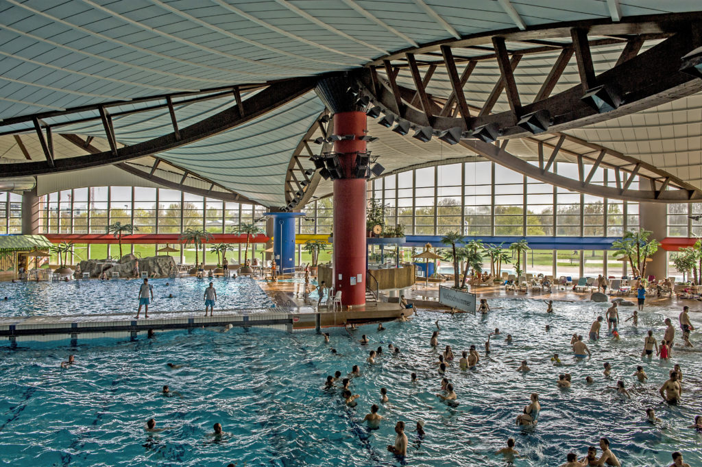 Das Rebstockbad ist mit einer Gesamtwasserfläche von 3.200 m² das größte Erlebnisbad im gesamten Rhein – Main – Gebiet. Für Urlaubsatmosphäre sorgen dort neben dem 25-m langen Sportbecken auch ein Nichtschwimmerbecken, tropische Palmen, ein Wellenbecken-Strand, eine Textilsauna in hawaiianischem Stil sowie Vulkan-Whirlpools. Besondere Attraktionen des Schwimmbades sind die 120-m langen Erlebnisrutschbahn und die „Black Hole“ mit Lichteffekten im Science-Fiction-Look. Durch Wasserschleusen gelangt man vom Hallenbad in das beheizte Außenbecken mit Strömungskanal. Das Freiluftgelände bietet eine weitläufige Liegewiese mit Planschbecken, Kinderspielplatz und ein Beachvolleyballfeld mit einer Gesamtfläche von ca. 10.000 m².