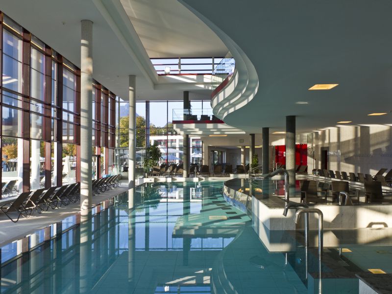 Pillar number two is dedicated to “Relaxation & Indulgence”. It includes the spacious sauna landscape as well as the Wellness Center. Finally, the third pillar constitutes “Therapy & Spa” and follows the traditions of Bad Reichenhall in prevention and health treatments with salt and brine.
