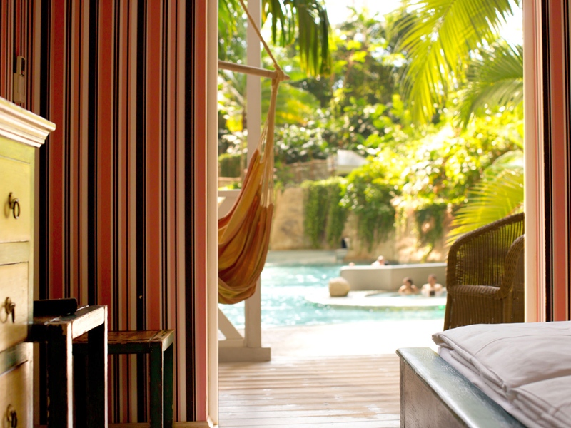If pizza or tropical barbecue – young and old people are invited to enjoy their meal between original tropical buildings.