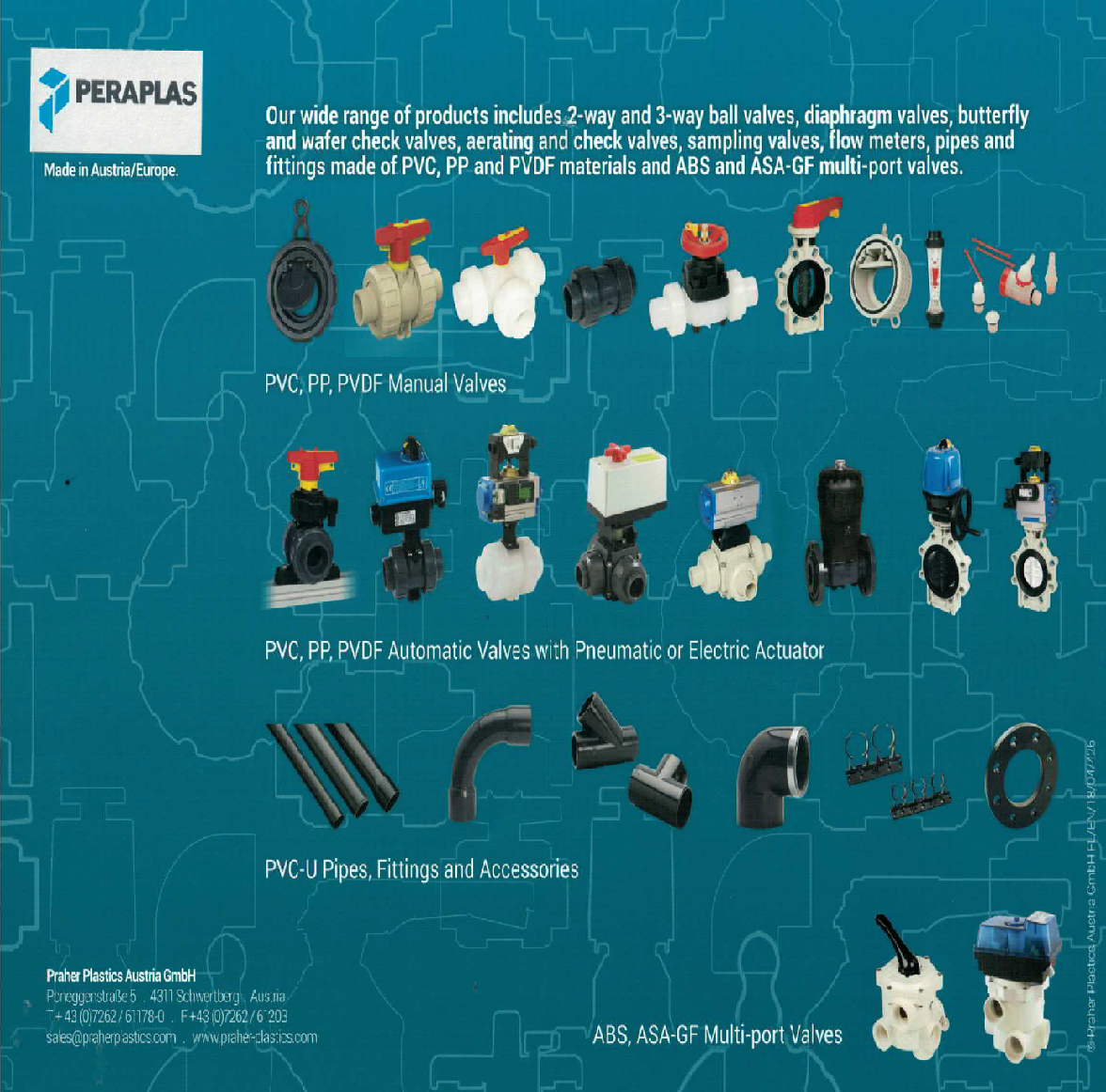 Peraplas ist der Deutsche Vertrieb für Kunststoff-Armaturen, Rohre und Fittinge für den Industrie-Rohrleitungsbau von Praher Plastiks Österreich.